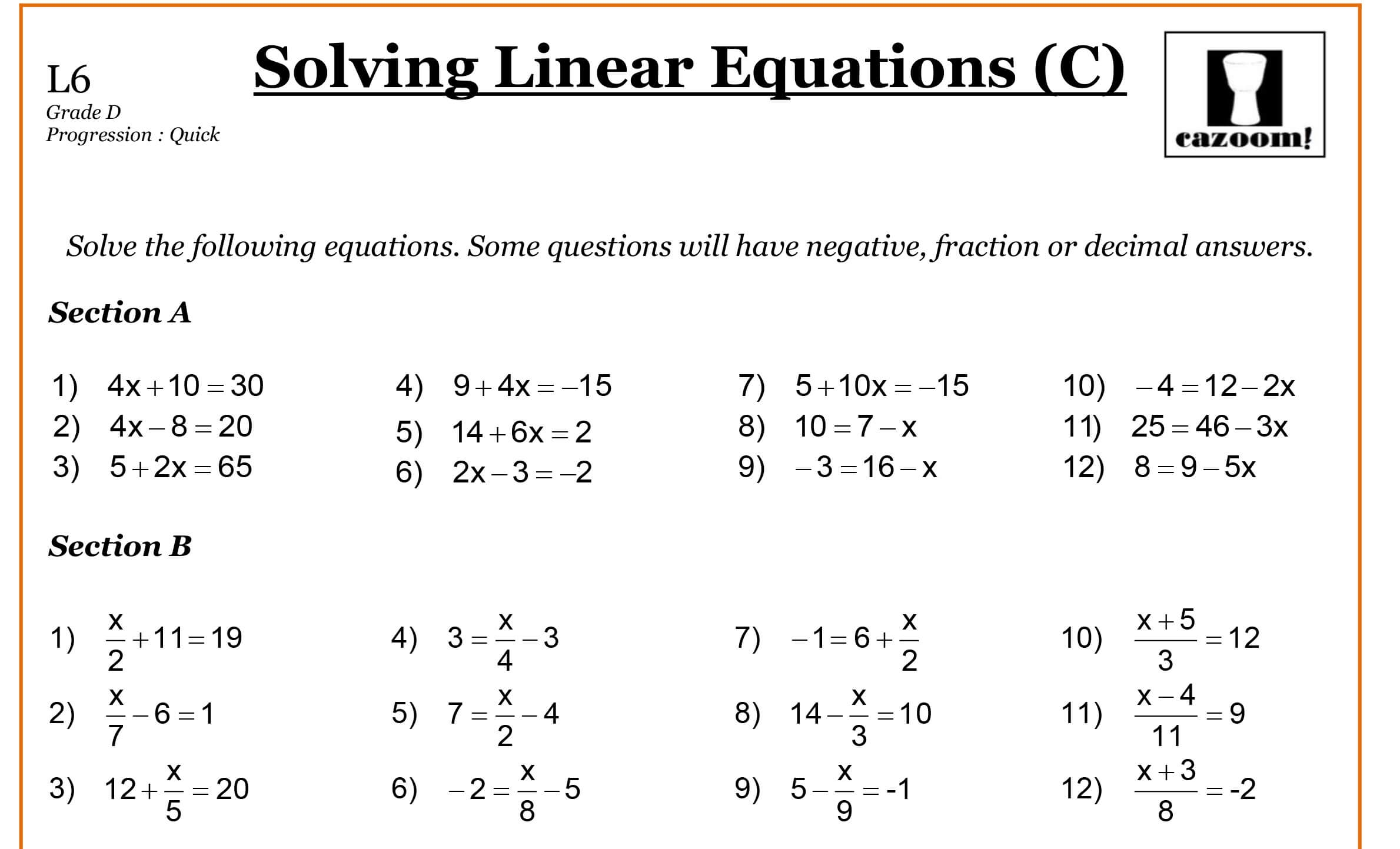 Linear Equation Worksheet For Grade 8 Tessshebaylo