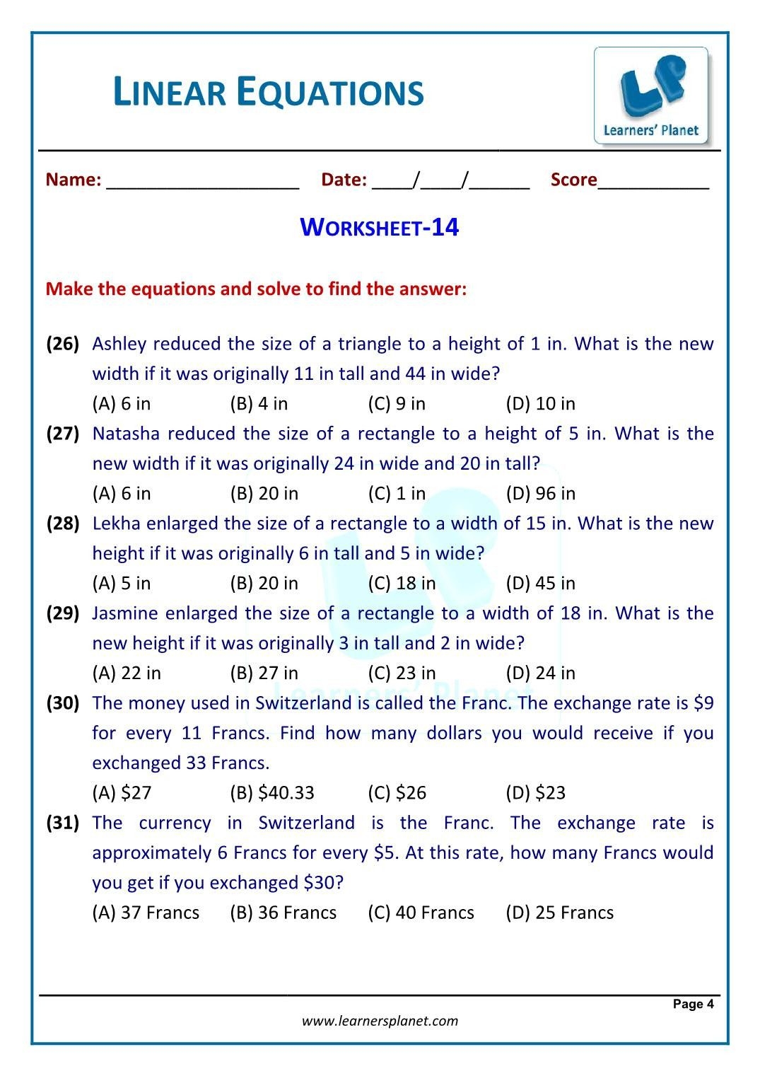 Linear Equation Word Problems Worksheets 15 Worksheets