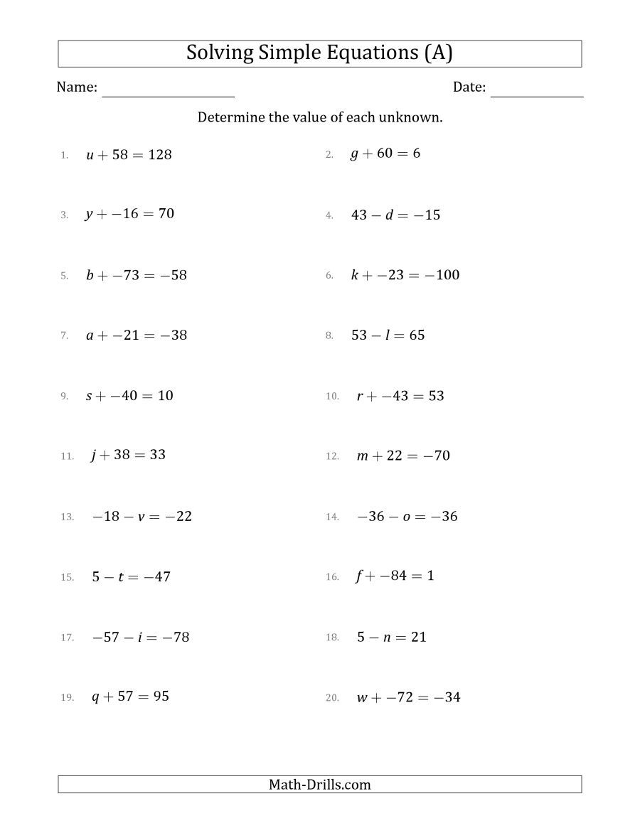 Linear Equations In One Variable Class 8 Worksheets Worksheets Master