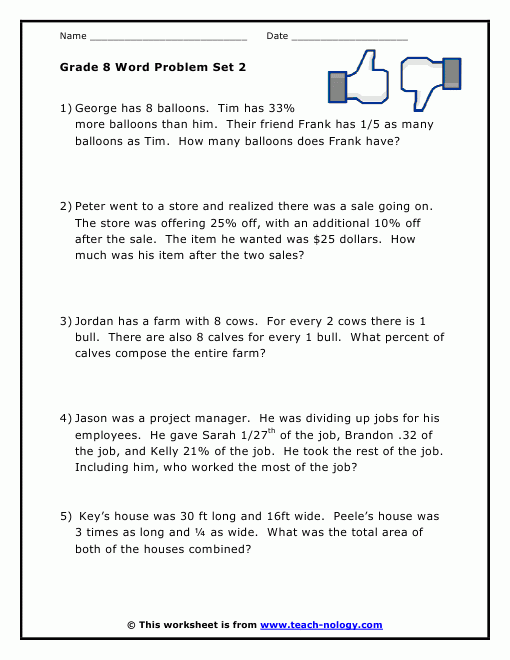 Math Grade 8 Word Problem Set 1 Worksheet Answer Key