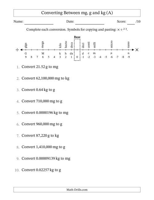 Download and Print Mg G And Kg Worksheet
