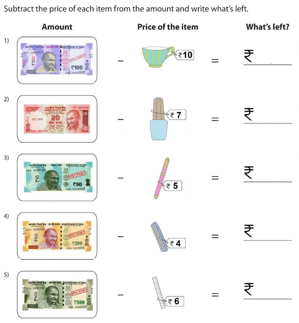 Grade 2 Subtraction Of Indian Money Online Exercise For Live