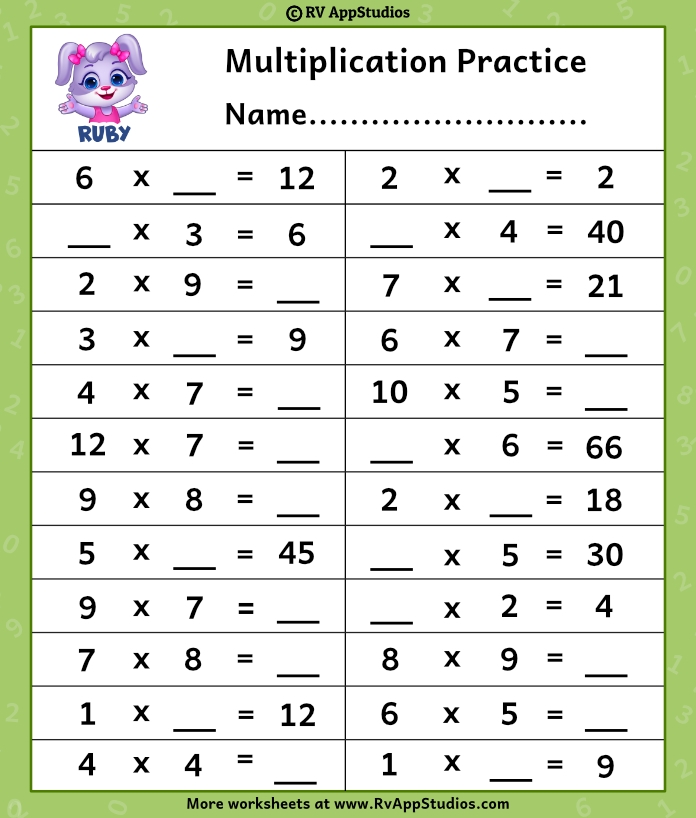 Download and Print Multiplication Practice Listed below