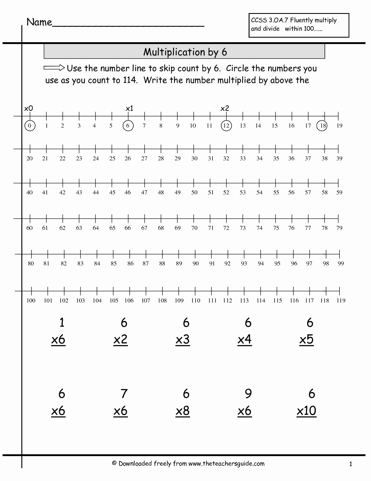 Multiplying By 6 Worksheet Printable
