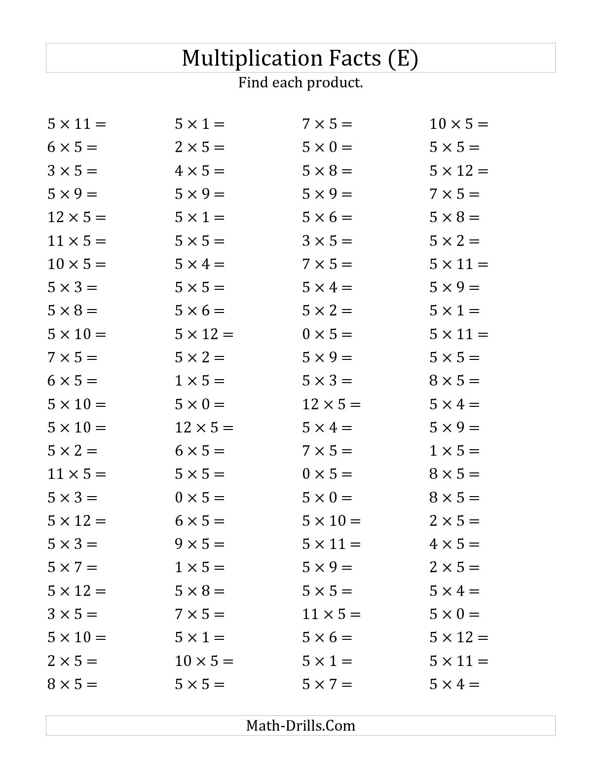 Multiplying By 6 Worksheet Fresh Multiplication Facts Worksheets From