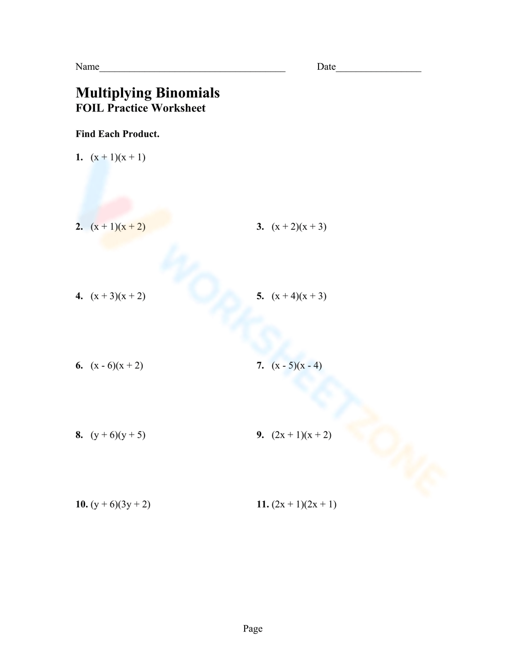 Multiplying Binomials Worksheet PDF Printable Algebra Worksheet Multiplying Binomials Worksheet PDF Printable Algebra Worksheet
