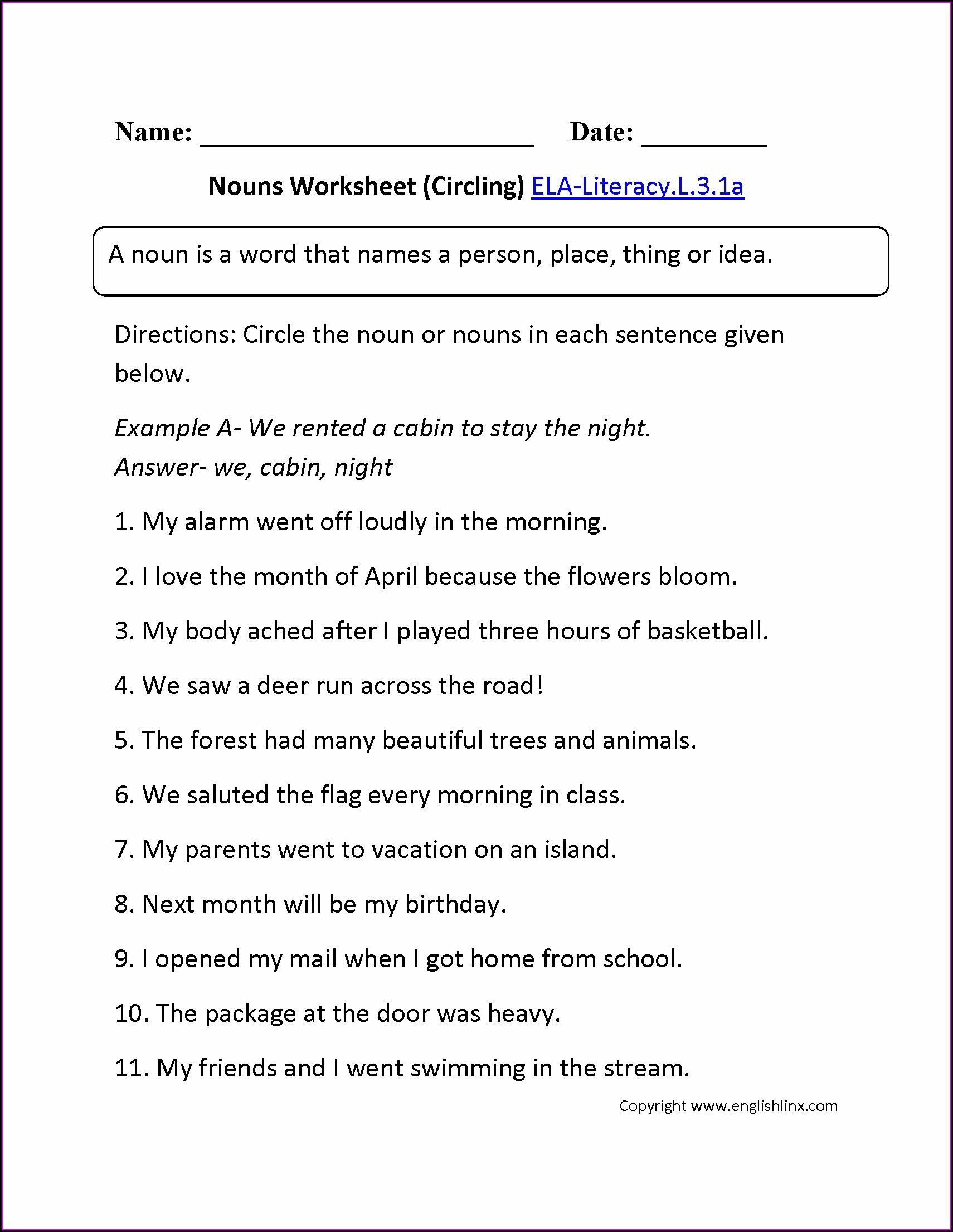 3rd Grade Noun Worksheet Class 3 Worksheet Resume Examples