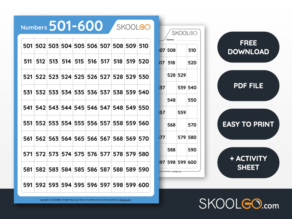 Numbers 501 To 600 Free Worksheet For Kids SKOOLGO