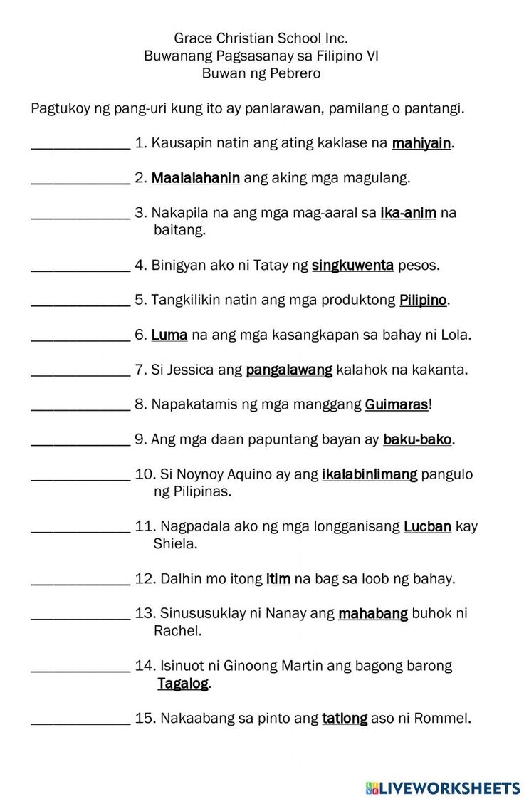 Mga Uri Ng Pang Abay Worksheet Worksheets Save Answers