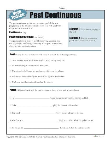 Verb Tense Worksheets Past Continuous