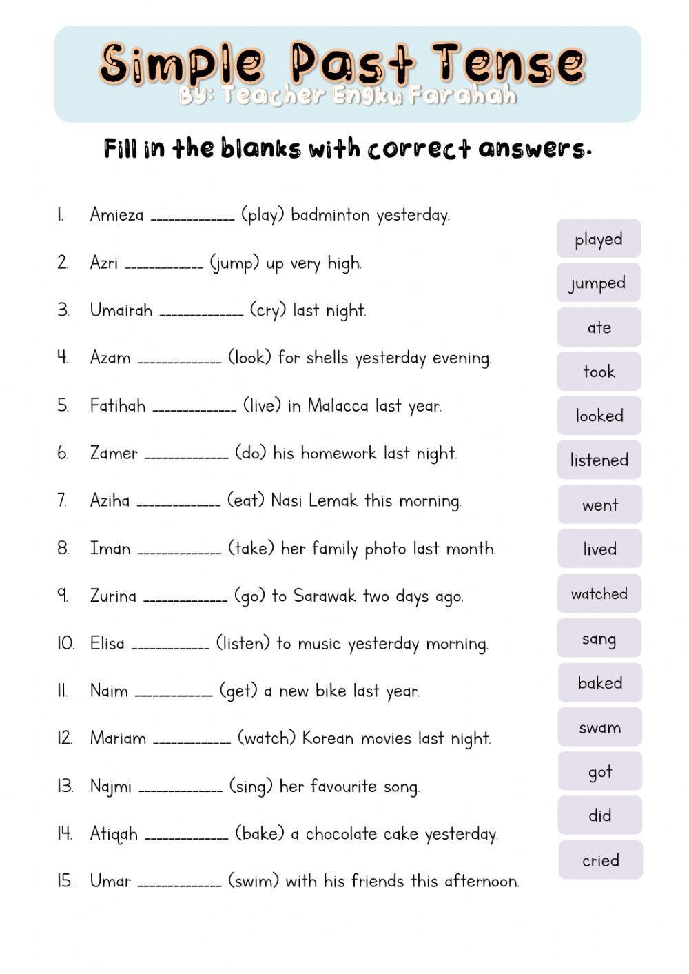 Simple Past Tense Online Pdf Exercise For Year 3 Live Worksheets Simple Past Tense Online Pdf Exercise For Year 3 Live Worksheets