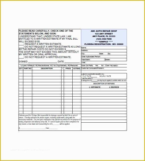 Free Printable Auto Repair Invoice Template Of 6 Auto Repair Invoice