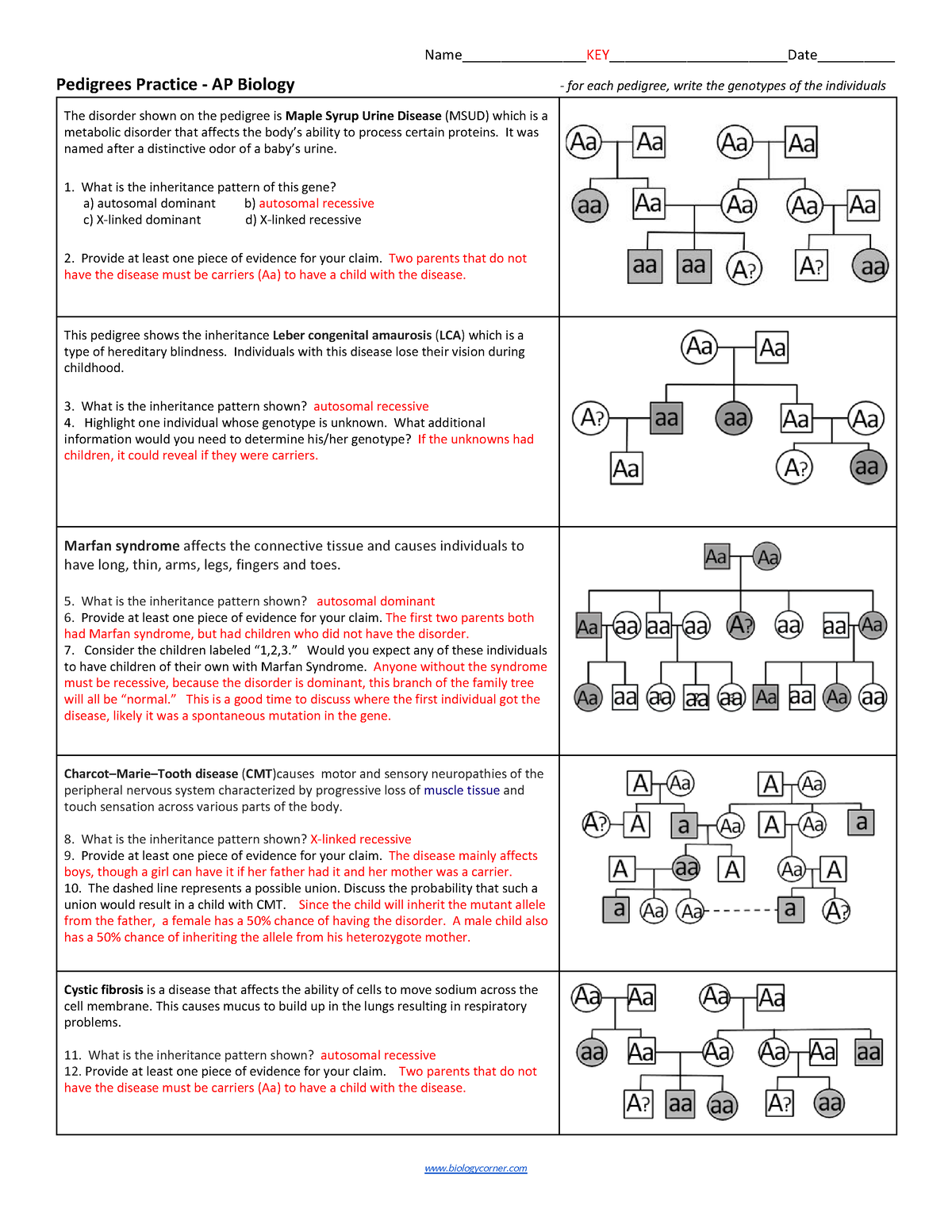 Pedigree Analysis APBiology KEY 1 Worksheets LibraryPedigree Analysis APBiology KEY 1 Worksheets Library