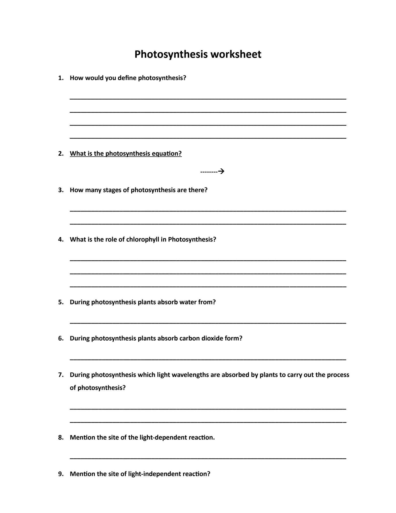 SOLUTION Photosynthesis Worksheet Studypool Worksheets Library
