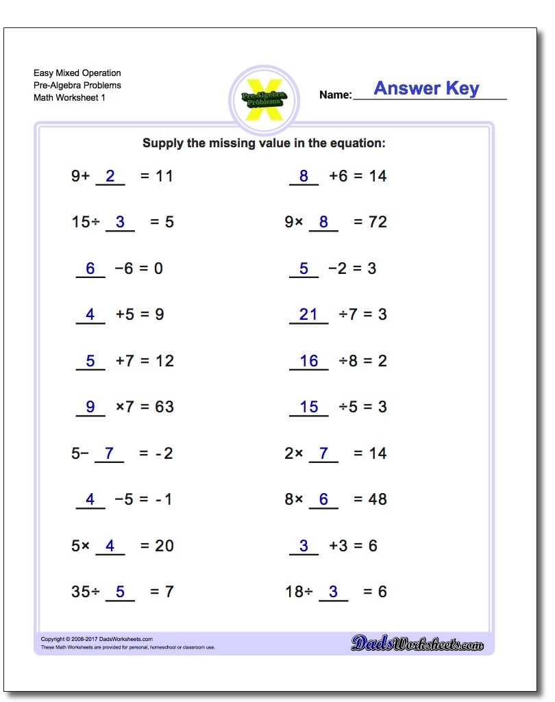 Download and Print Pre Algebra Worksheets Listed below