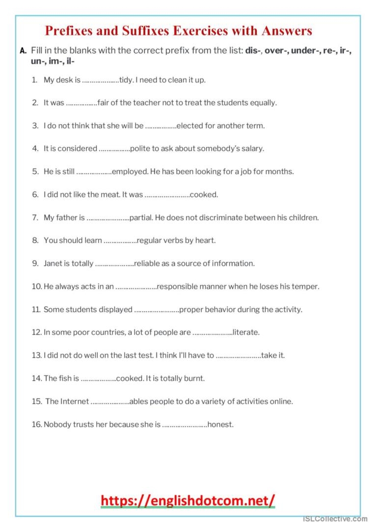 Prefix And Suffix Worksheets And Exercises EnglishanPrefix And Suffix Worksheets And Exercises Englishan