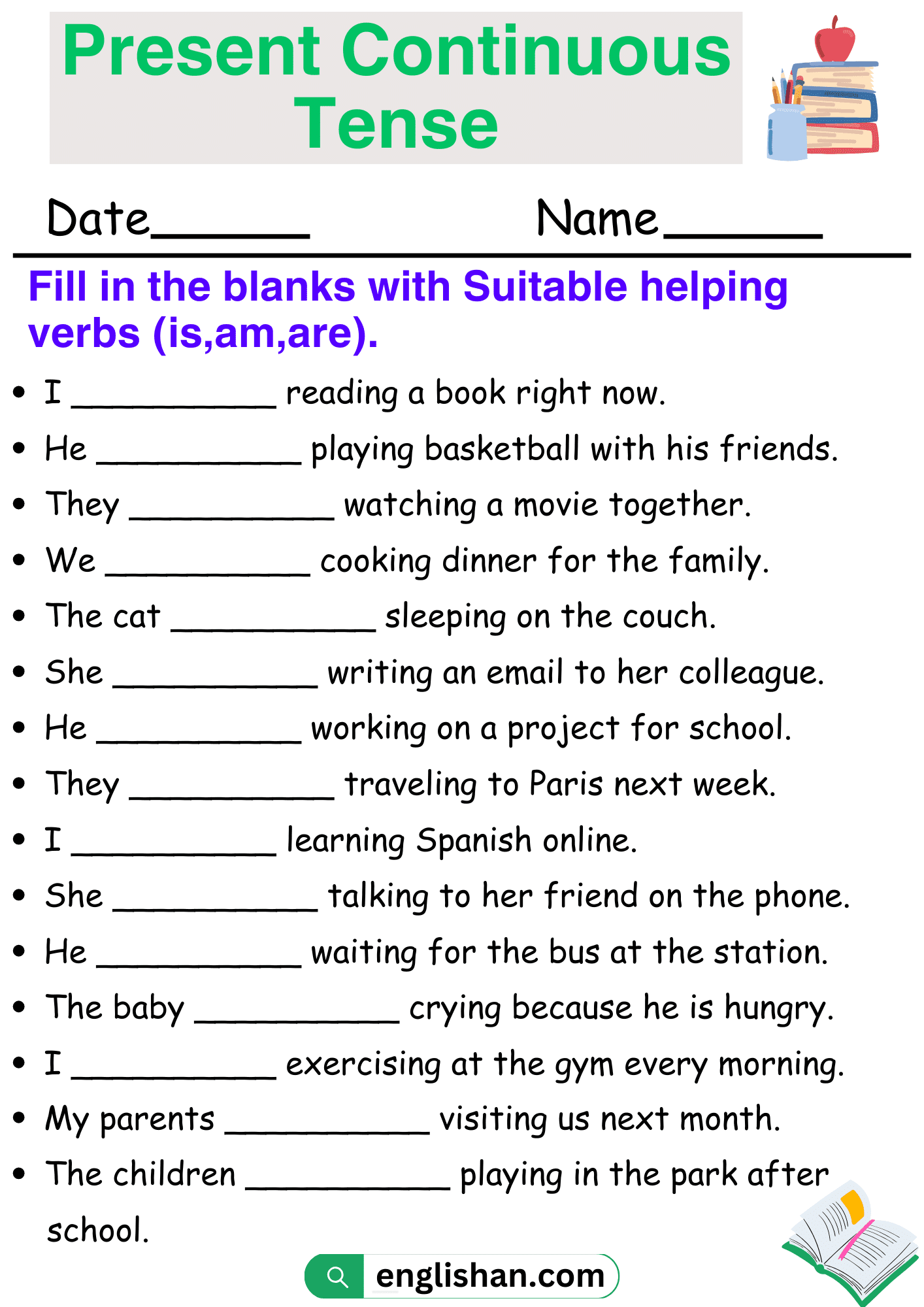 Present Continuous Tense Worksheets And Exercises With Answers