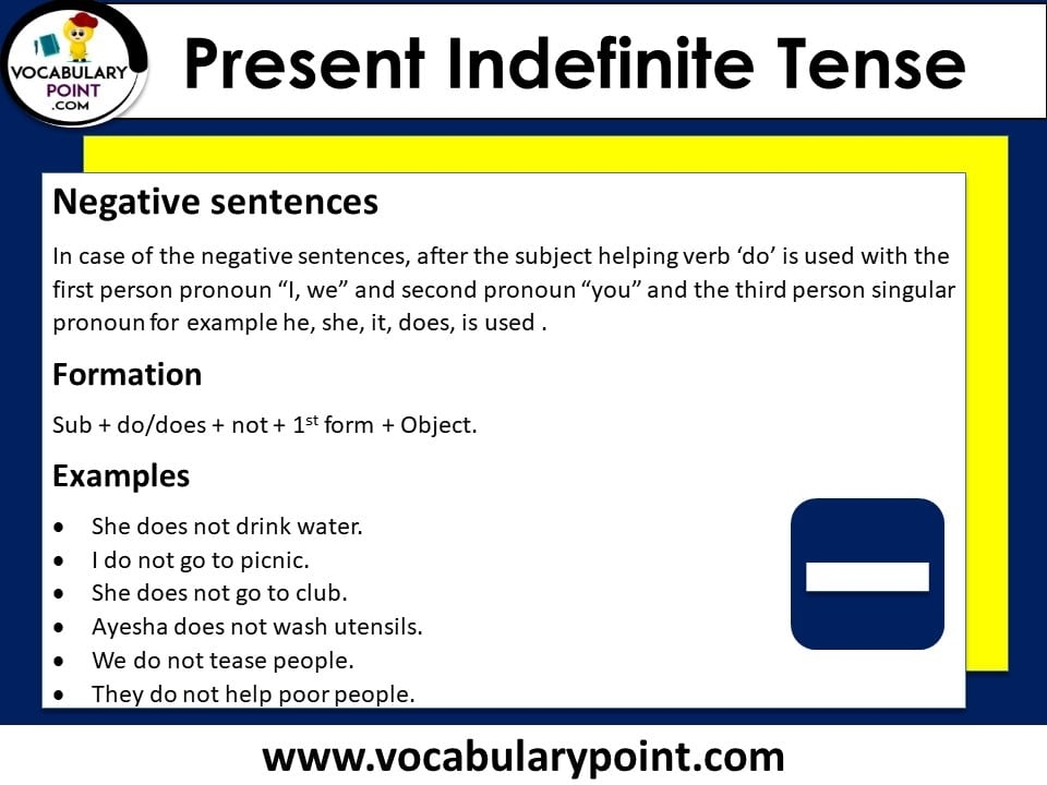 Present Indefinite Tense Examples Sentences Formation Vocabulary