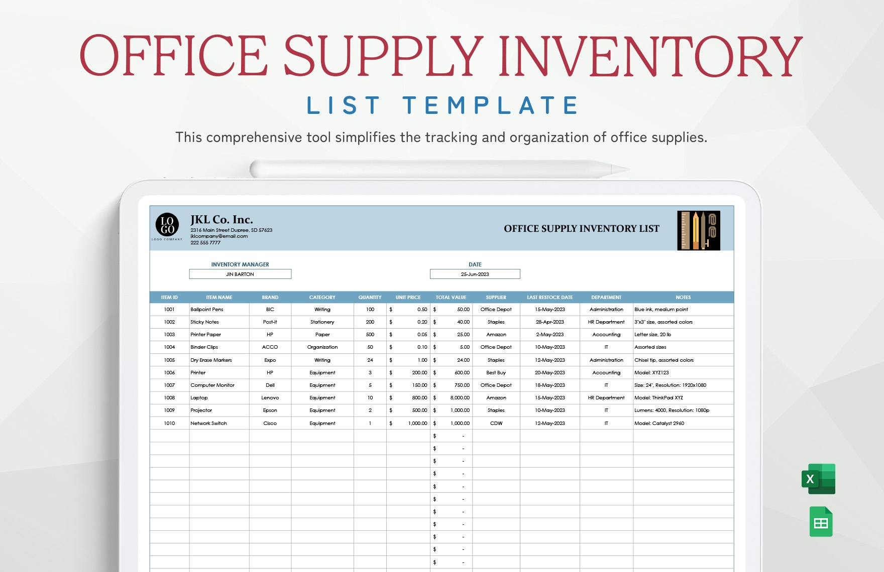 Office Supply Inventory List Template In Excel Google Sheets Office Supply Inventory List Template In Excel Google Sheets
