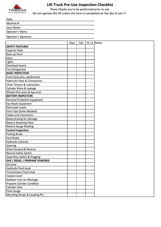 Download and Print Printable Free Weekly Forklift Inspection Checklist Template Listed below