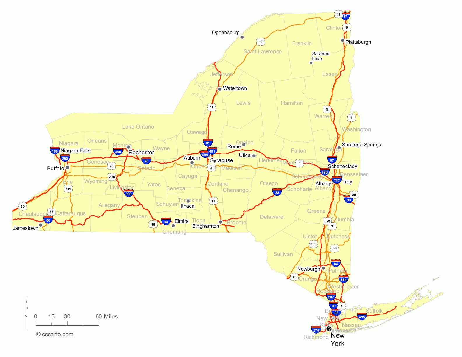 Printable Map Of New York State With Cities