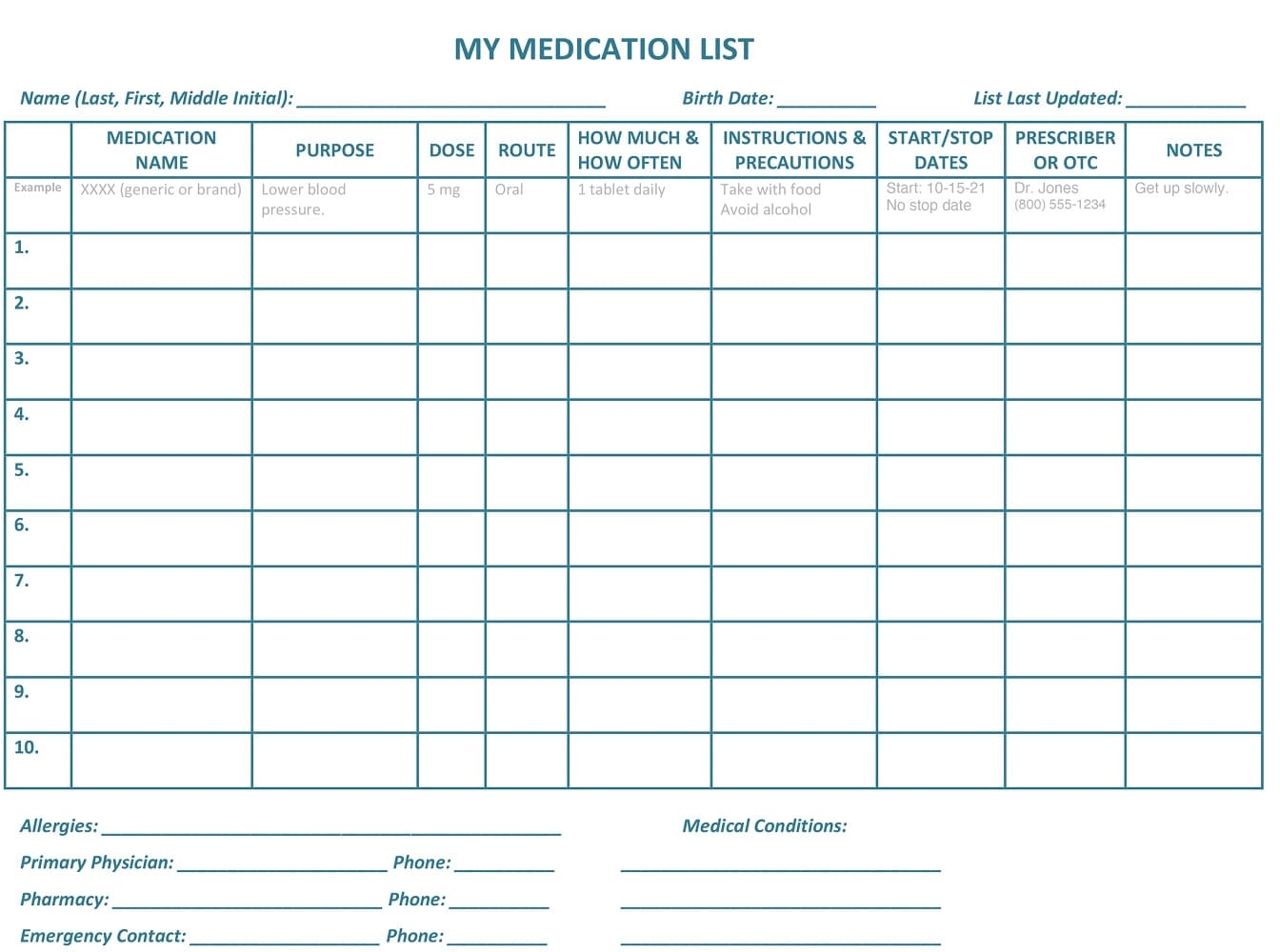 Download and Print Printable Medication List Template Free Listed below