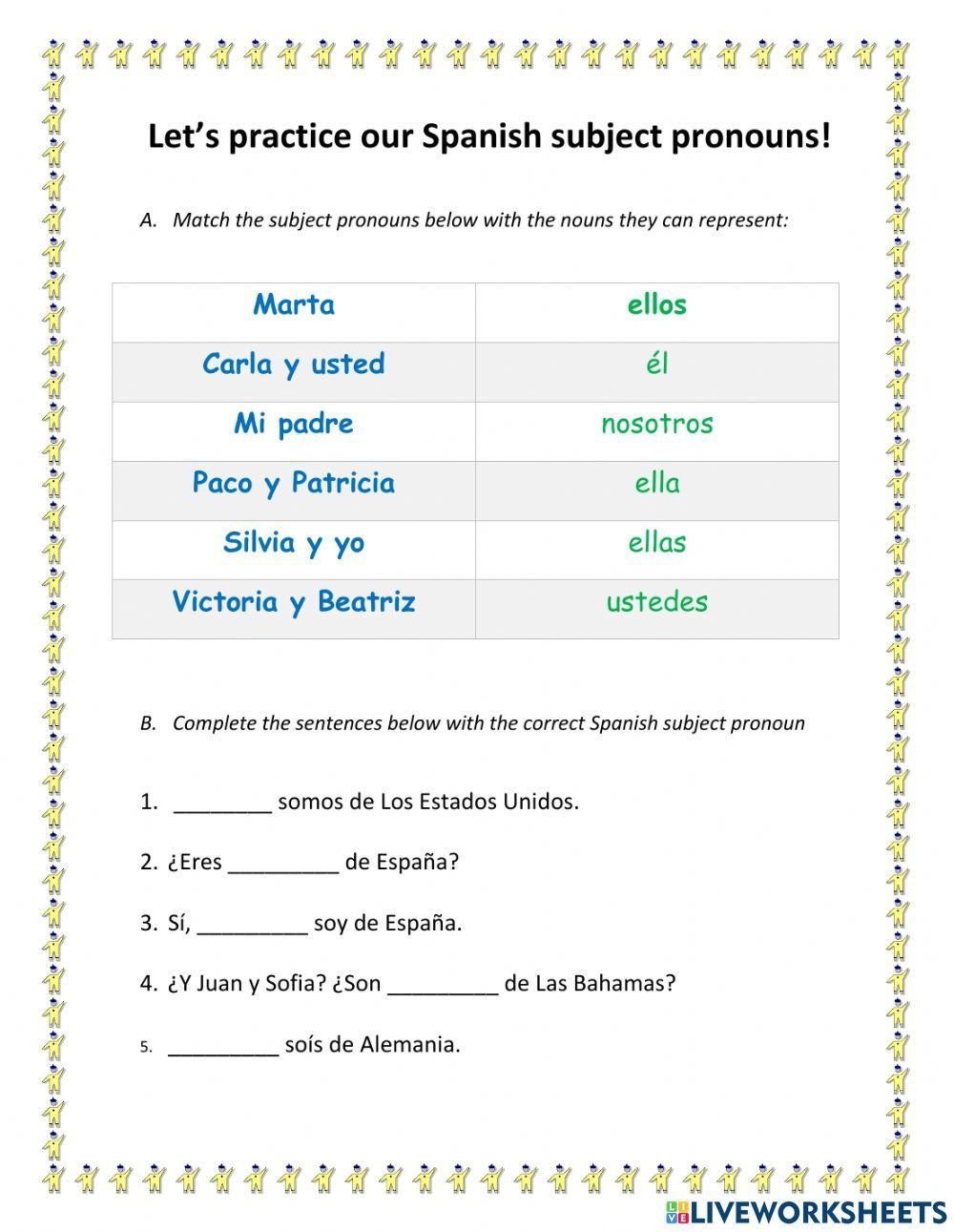 SOLUTION Spanish Pronouns Worksheet Studypool Worksheets LibrarySOLUTION Spanish Pronouns Worksheet Studypool Worksheets Library