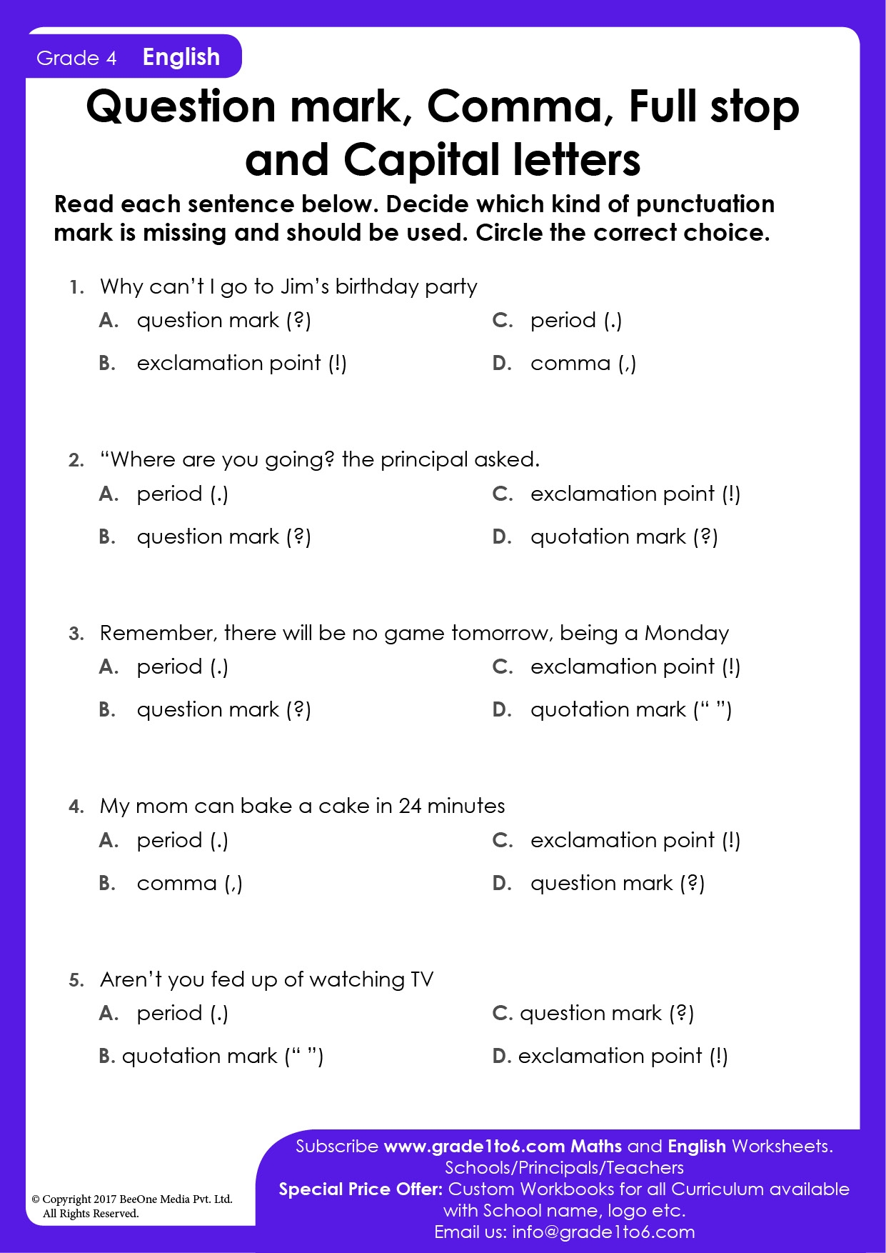 Download and Print Punctuation Worksheets Listed below