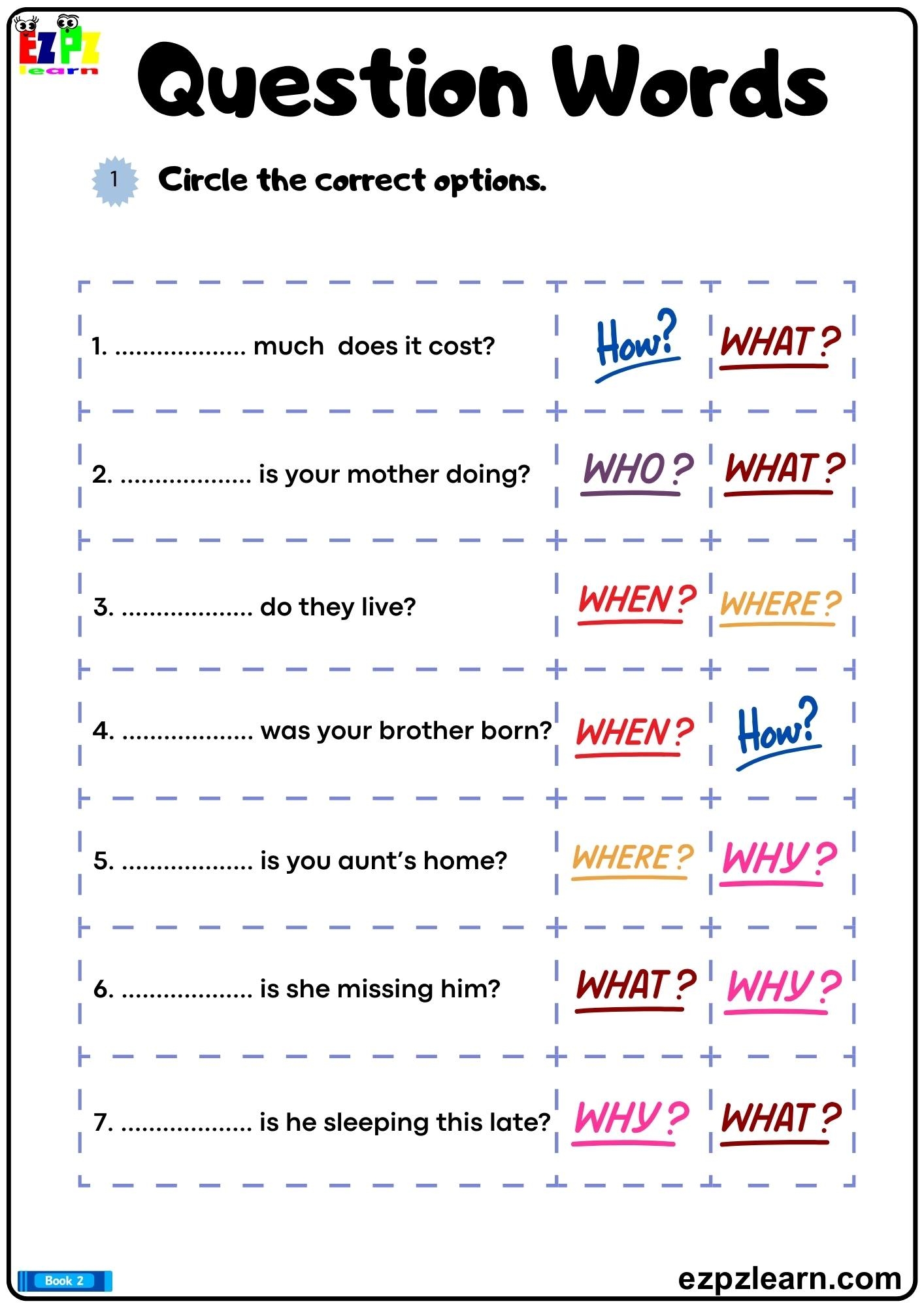 Question Words Worksheet are pre-designed digital files that you can access, output on paper, and use to streamline different parts of your life. They’re popular because they are time-saving, are user-friendly, and make it easier to manage their daily tasks. Whether for home life, education, or professional tasks, printable templates offer a convenient and affordable solution.