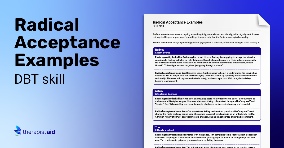 Radical Acceptance Examples Worksheet Therapist Aid Worksheets