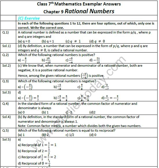 Cbse Class 7 Mathematics Rational Numbers Exemplar Solutions
