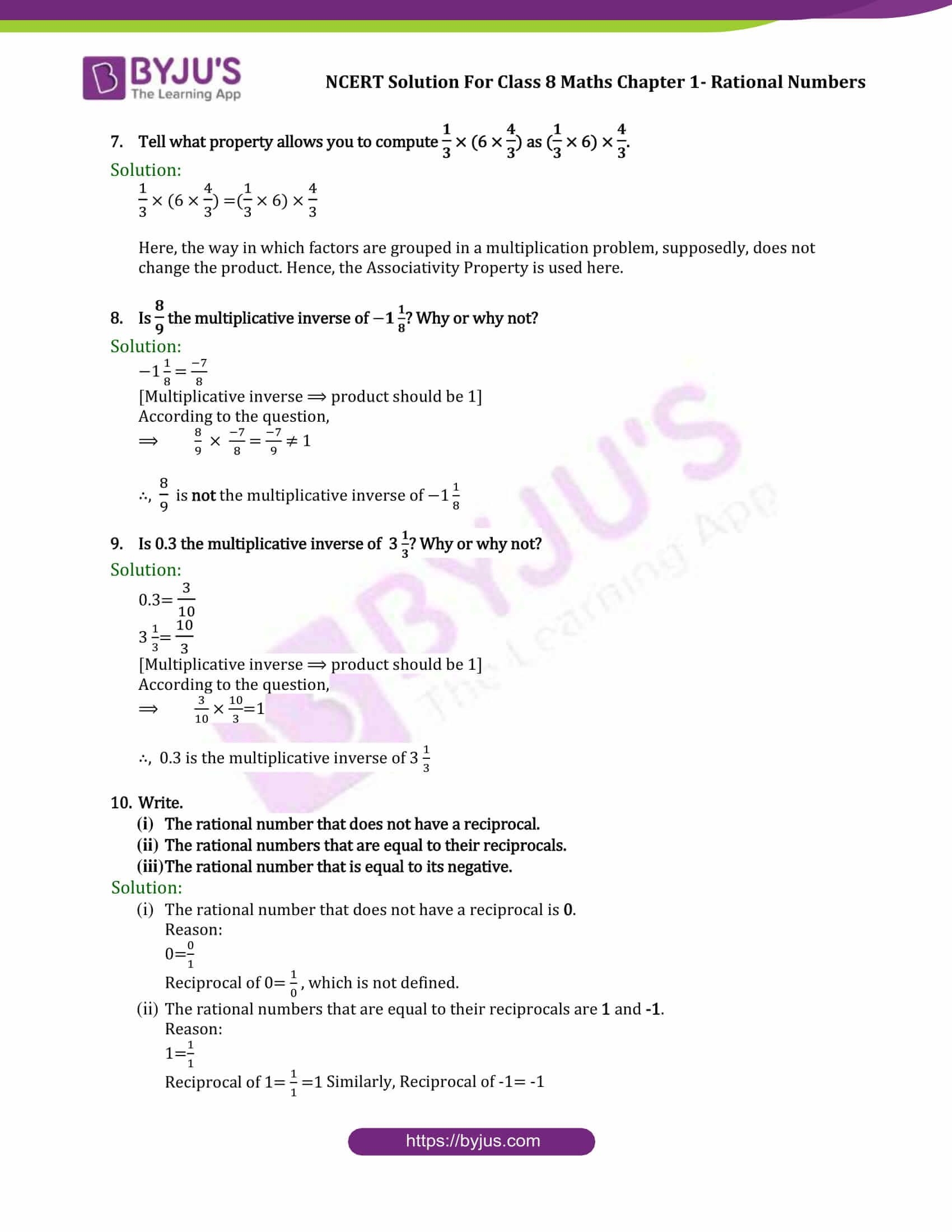 NCERT Solutions For CBSE Class 8 Chapter 1 Rational Number Part 5