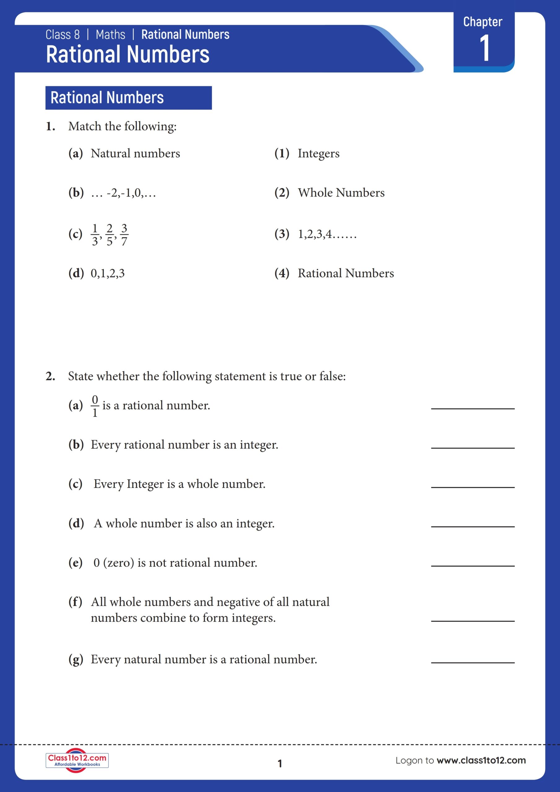 Download and Print Rational Number Class 8 Listed below