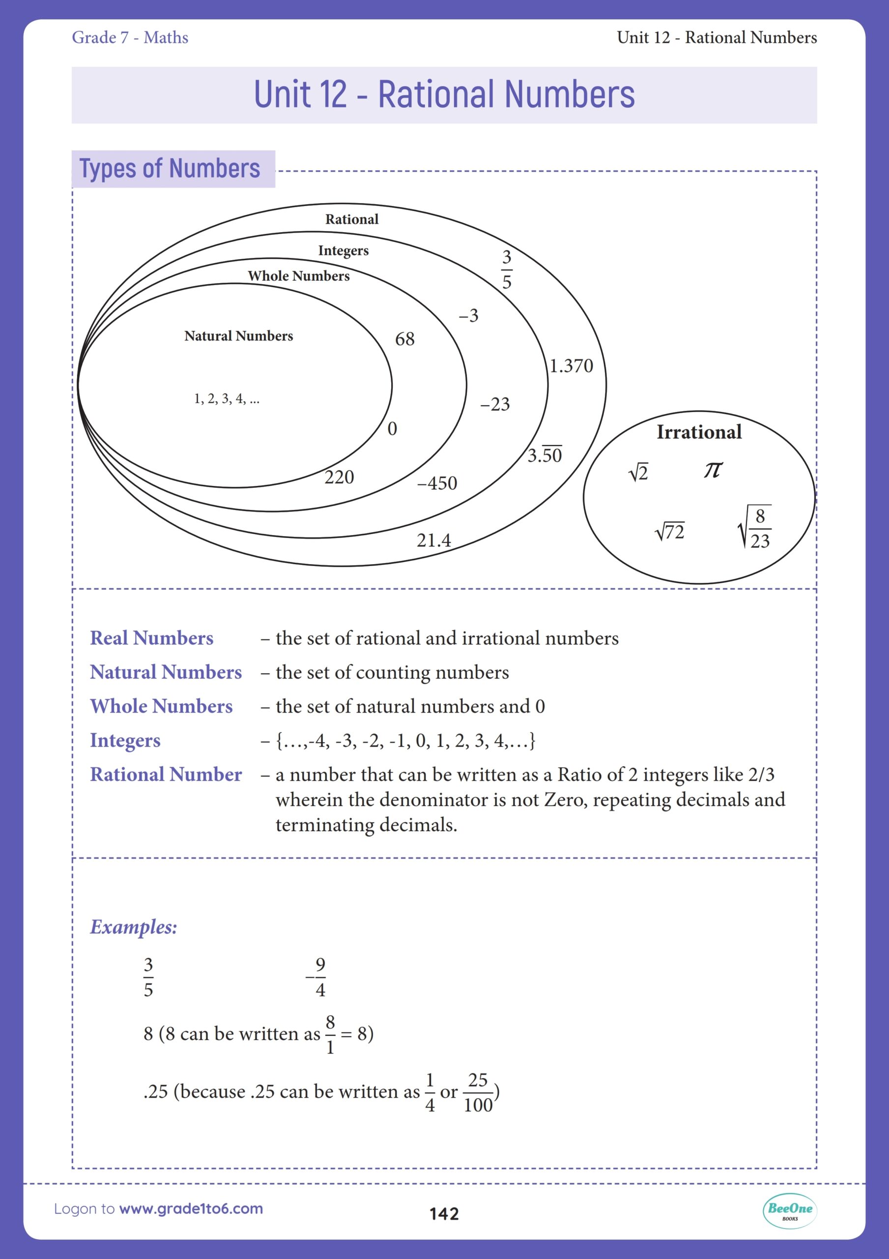Rational Numbers Worksheet Grade 7 Printable PDF Template