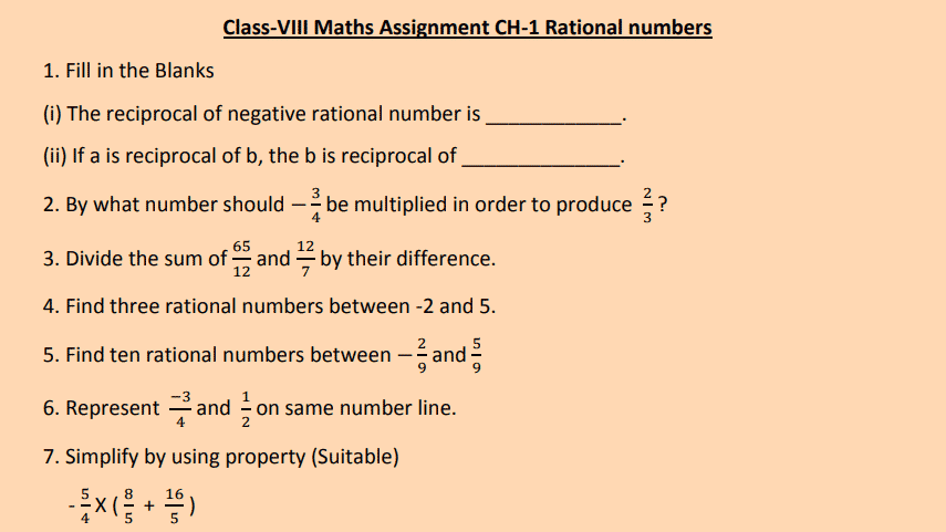 Download and Print Rational Numbers Class 8 Worksheet Listed below