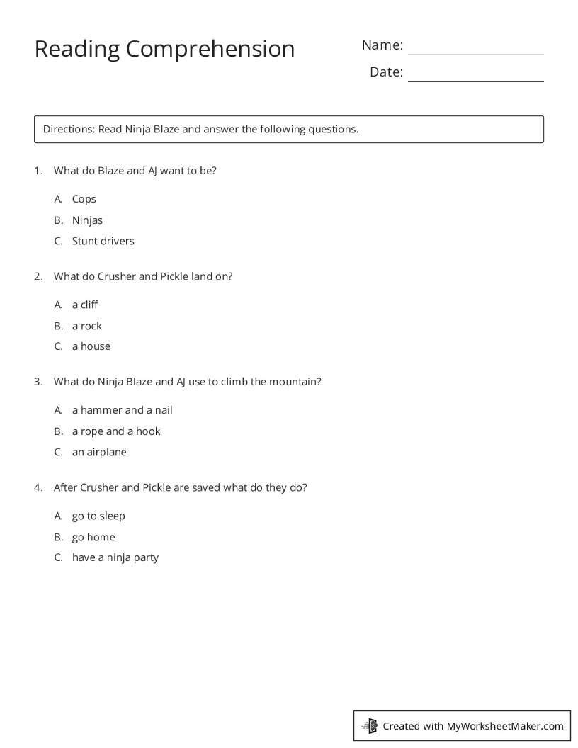 Reading Comprehension My Worksheet Maker Create Your Own Worksheets