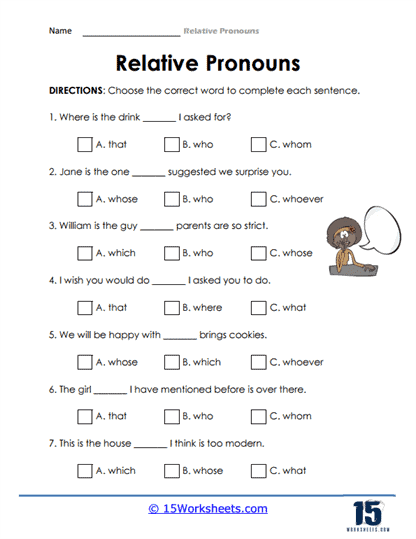 Try using Relative Pronouns Worksheet and find out how a quick solution can bring big results.
