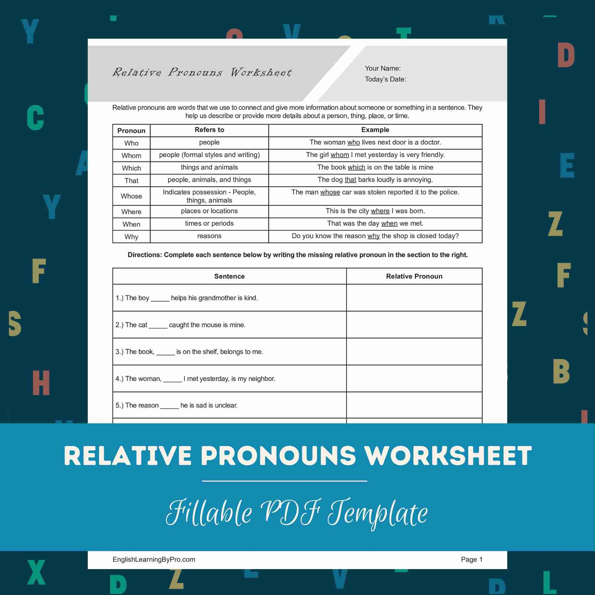 Learning about relative pronouns can be a bit tricky, but with the right resources, it can become much easier. One great tool to help students practice using relative pronouns is a worksheet designed specifically for this purpose.