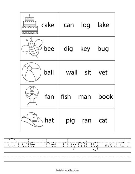 Circle The Rhyming Word Worksheet Twisty Noodle Worksheets Library