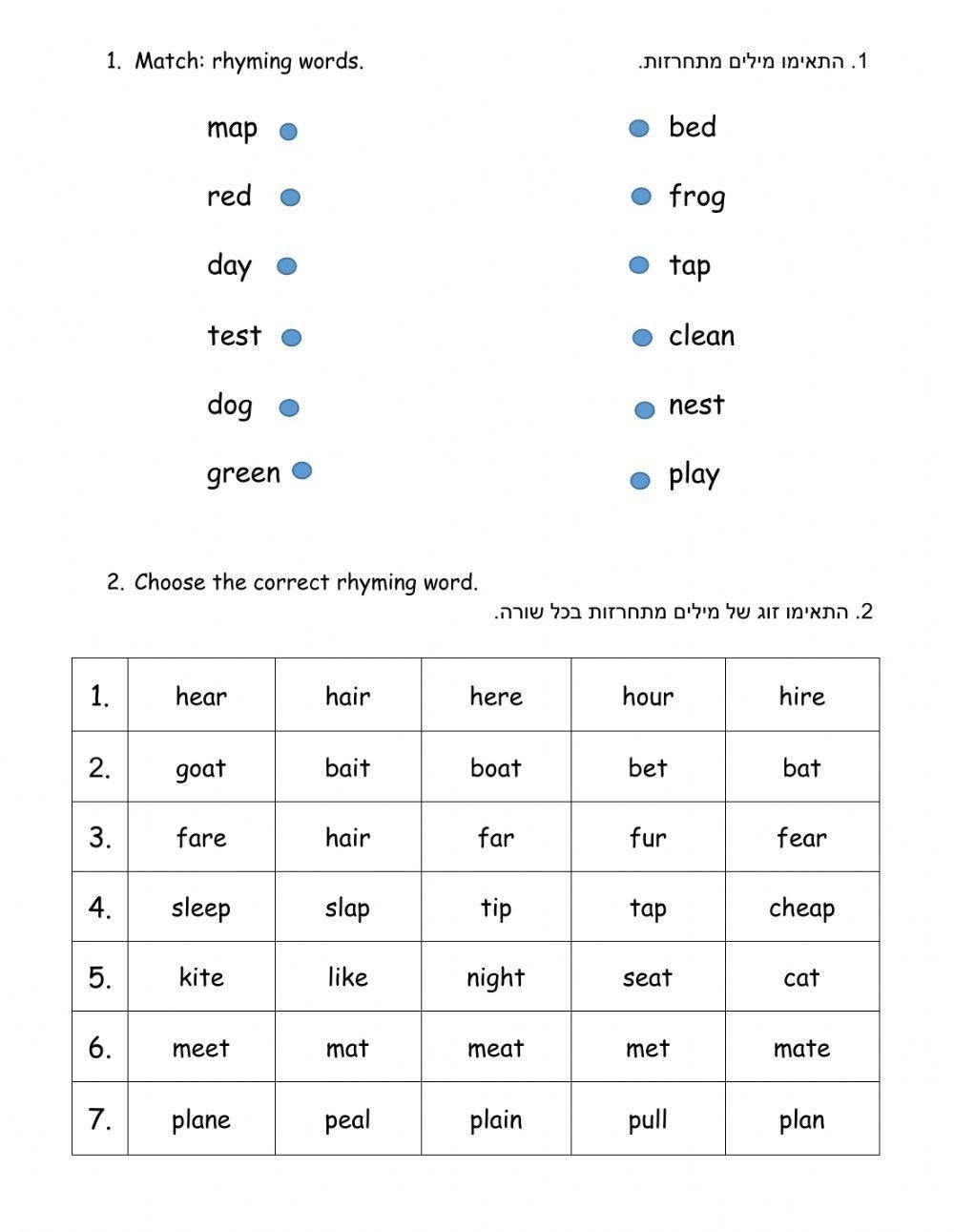Rhyming Words Online Activity For 3 Live Worksheets Worksheets Library
