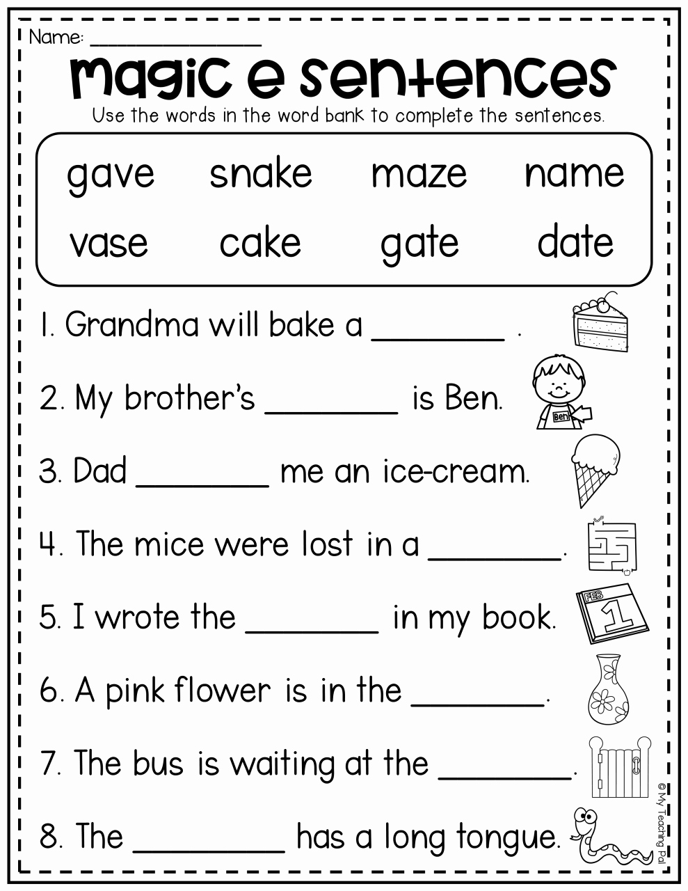 Download and Print Silent E Worksheets Listed below