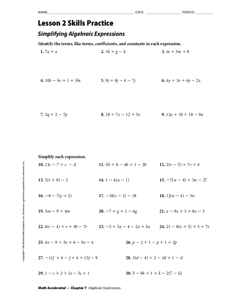 Download and Print Simplifying Algebraic Expressions Worksheet Listed below