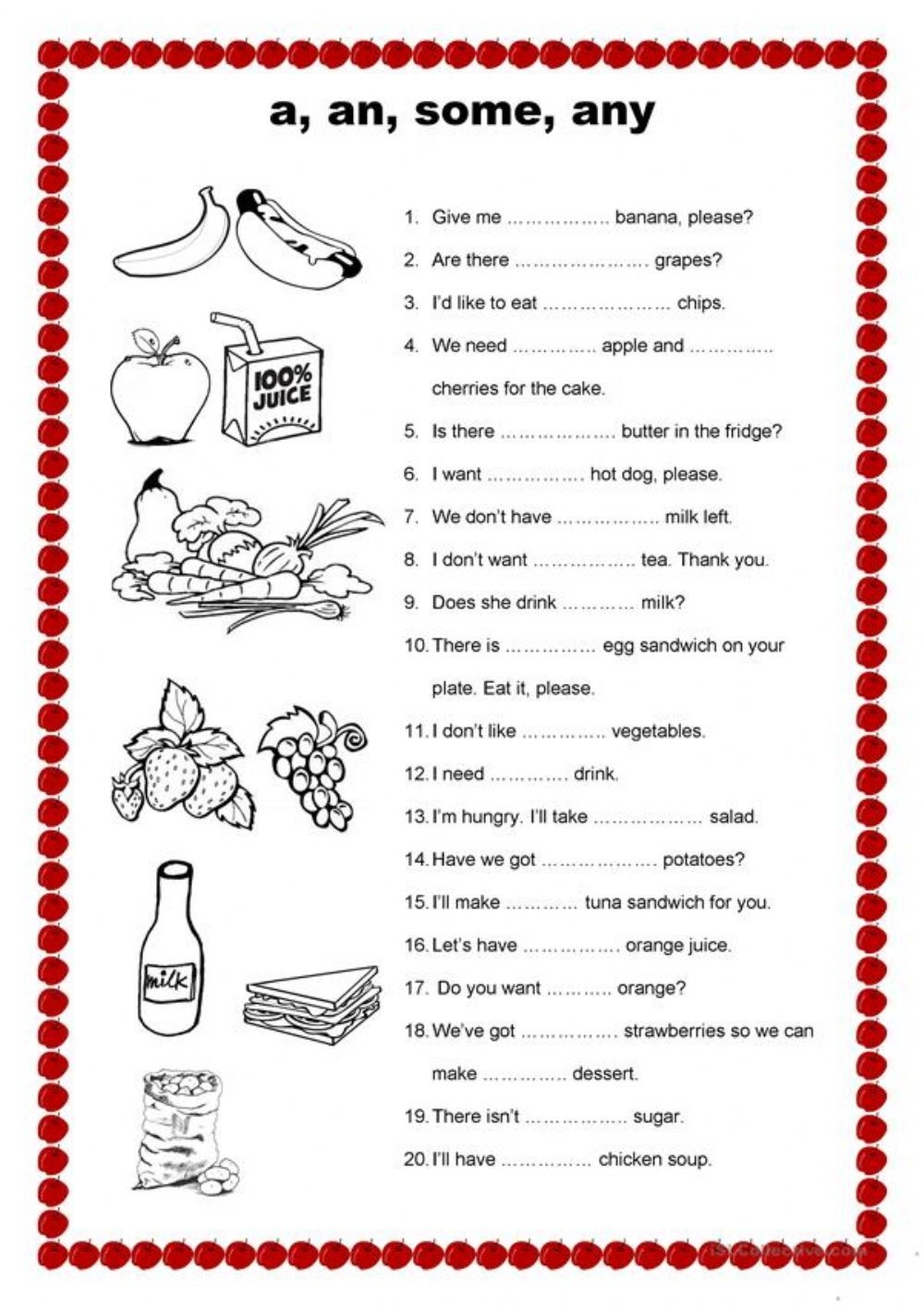 Some Any A An Interactive Worksheet English Grammar English Lessons
