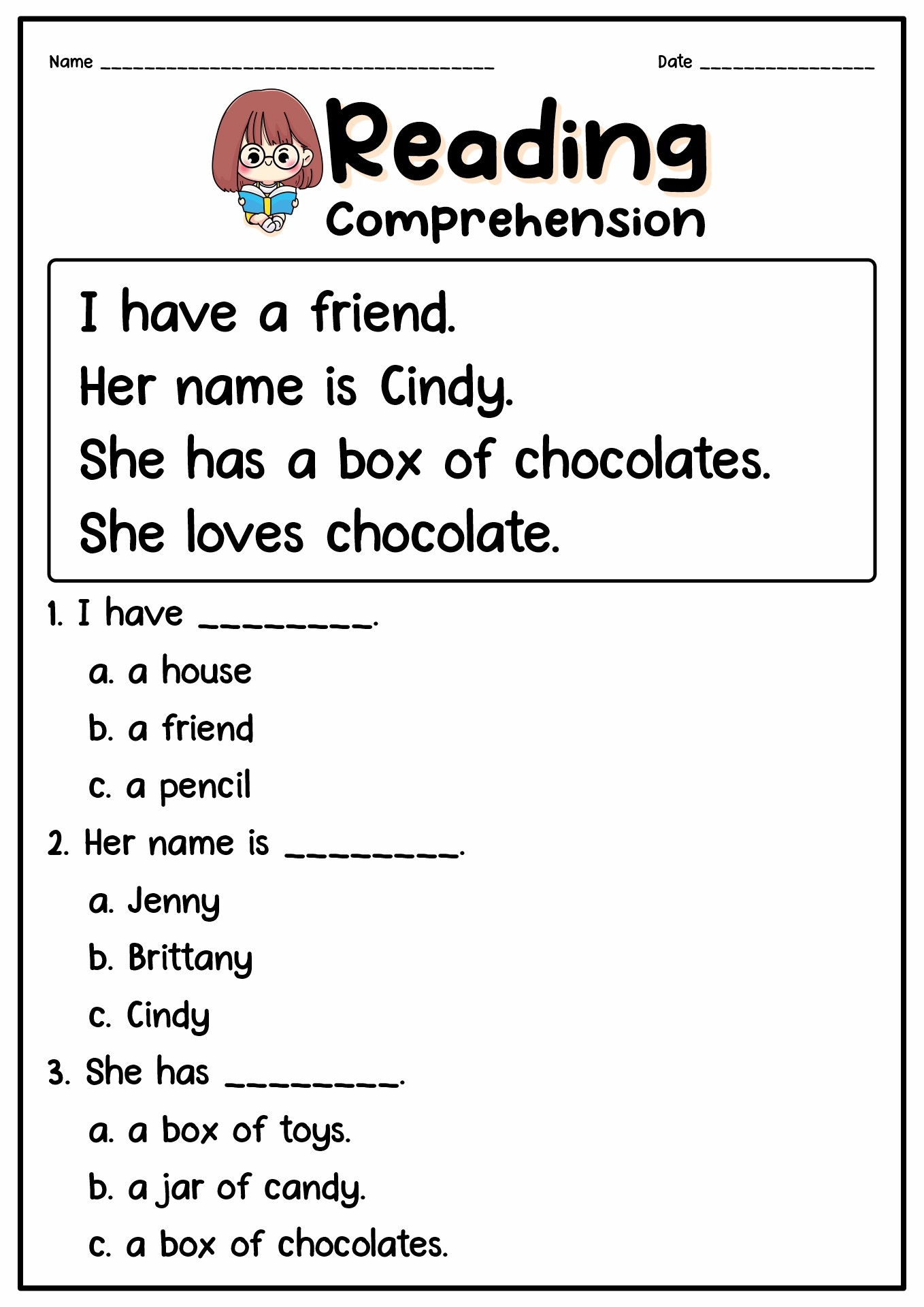Download and Print Story Comprehension Listed below