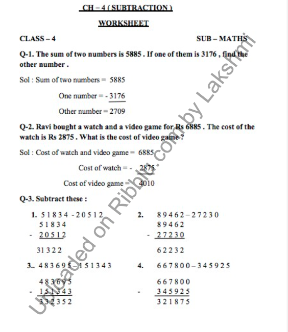 CBSE Class 4 Subtraction WorksheetsCBSE Class 4 Subtraction Worksheets