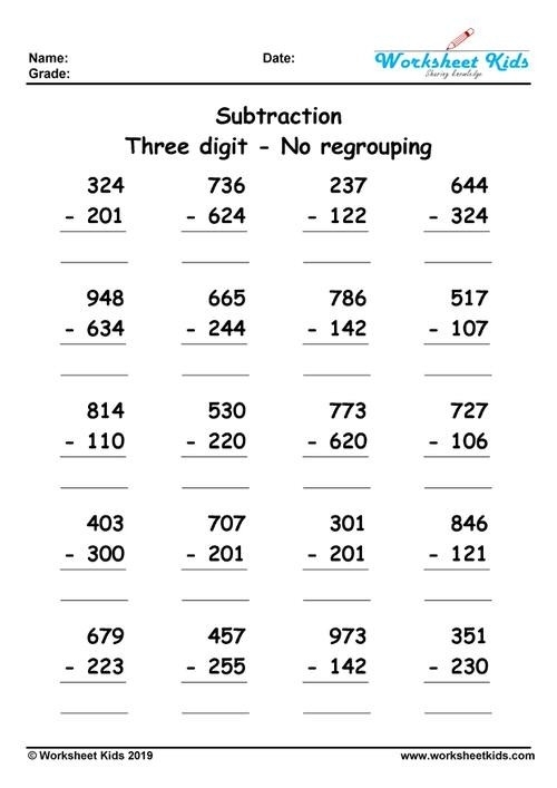 3 Digit Subtraction Regrouping Worksheets And Exercise