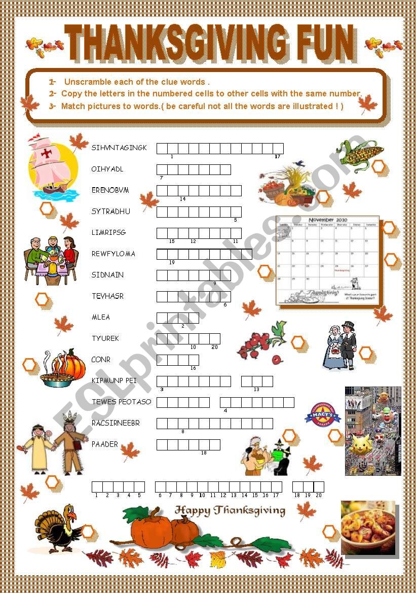 Download and Print Thanksgiving Activities Worksheet Listed below