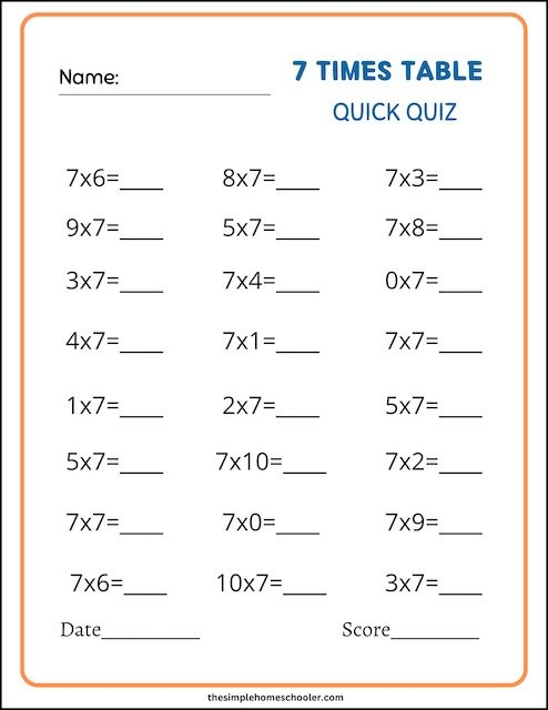 Very Best Times Table Test Printables Individual And Mixed Quizzes