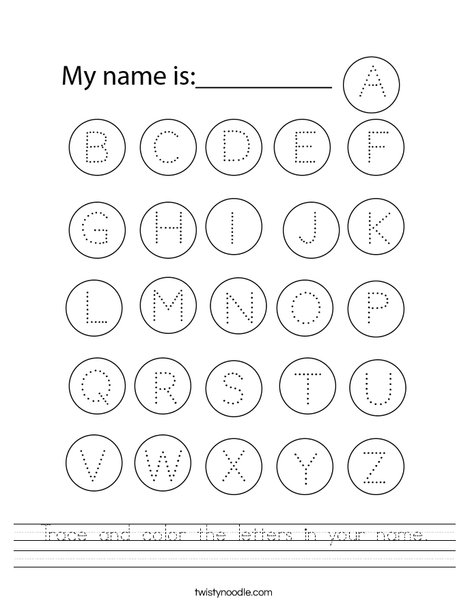 Trace And Color The Letters In Your Name Worksheet Twisty Noodle