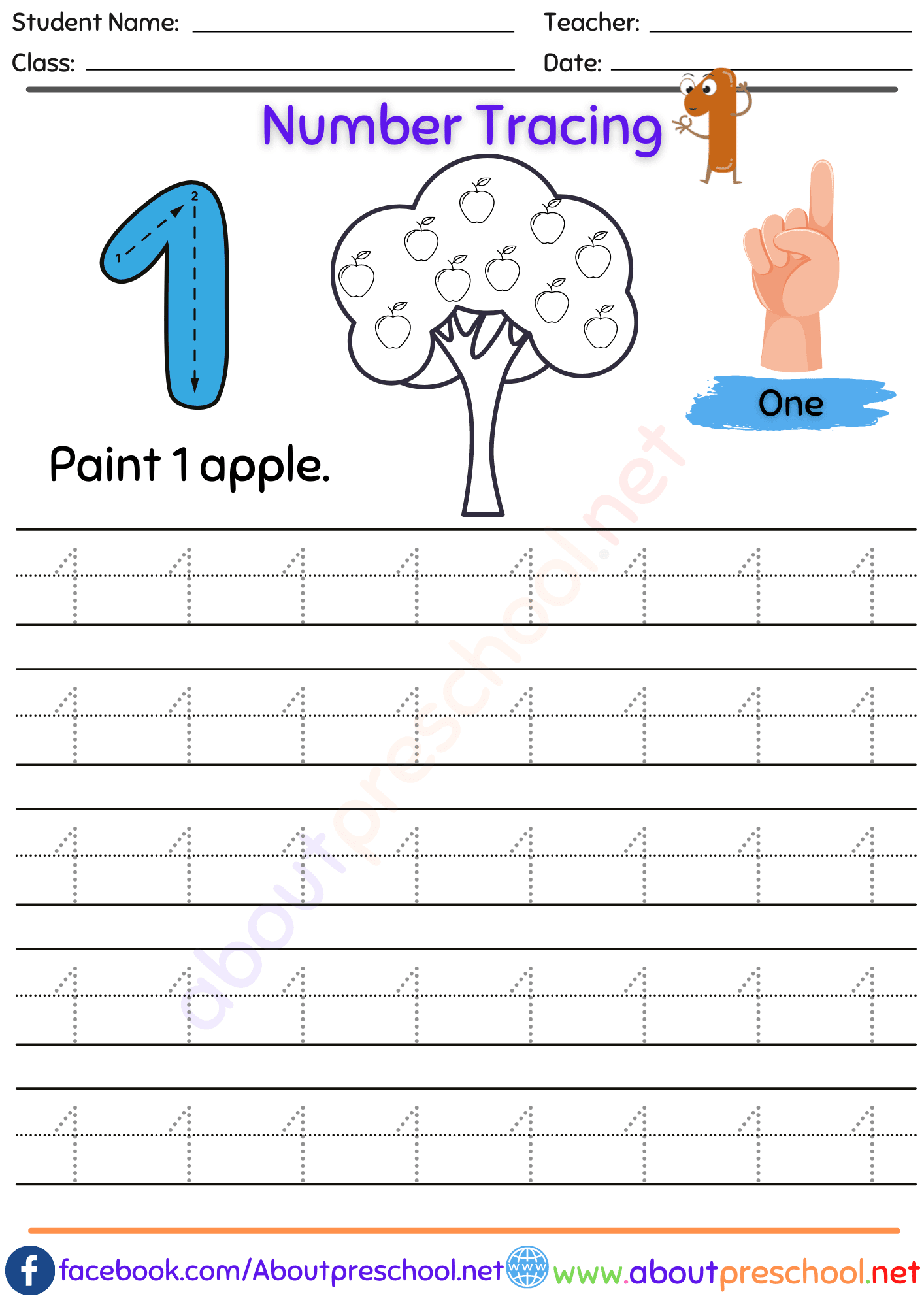 Download and Print Tracing Number 1 Listed below